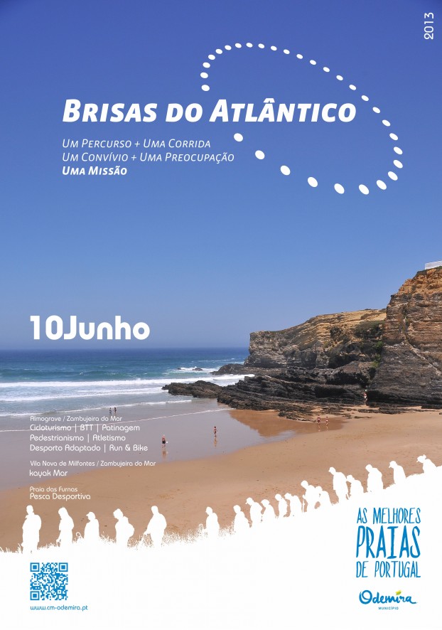 Dia 10 de Junho é o dia das “Brisas do Atlântico”, no litoral do concelho de Odemira, um evento desportivo multidisciplinar, entre Almograve e Zambujeira do Mar, que por missão contribuir para um melhor desporto, para todos e com uma causa social. Esta prova mobiliza anualmente cerca de 1.500 participantes e envolve as modalidades de cicloturismo, BTT, patinagem, pedestrianismo, atletismo (individual e estafetas), run & bike, desporto adaptado, kayak mar e, como novidade na edição deste ano, a pesca desportiva.