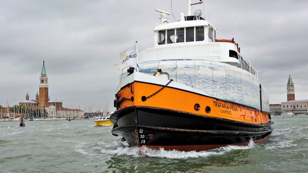 Cacilheiro "Trafaria Praia" já foi ornamentado e está pronto a inaugurar 27 de Maio de 20133 de Março de 2014 portaldomar A ornamentação com têxteis e azulejos da artista Joana Vasconcelos do cacilheiro “Trafaria Praia” foi hoje concluída, em Veneza, estando tudo a postos para a inauguração daquele que será o pavilhão de Portugal na Bienal da cidade italiana. Partilhar isto: Partilhar no Facebook (Abre numa nova janela) Facebook Share on X (Abre numa nova janela) X Email a link to a friend (Abre numa nova janela) E-mail Share on Threads (Abre numa nova janela) Threads Share on WhatsApp (Abre numa nova janela) WhatsApp Share on LinkedIn (Abre numa nova janela) LinkedIn Gosto Carregando... Relacionado Publicado por portaldomar Ver todos os artigos de portaldomar