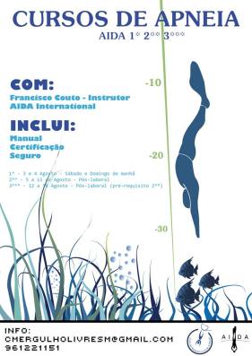 Cursos de mergulho livre para o mês de Agosto em parceria com o instrutor AIDA Internacional, Francisco Couto.