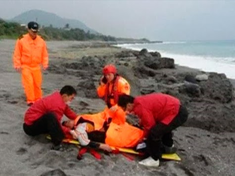Segundo testemunhas, o homem de 42 anos conseguiu agarrar-se a uma tampa de uma caixão de madeira que estava a flutuar e foi levado até à costa, na província de Hualien.