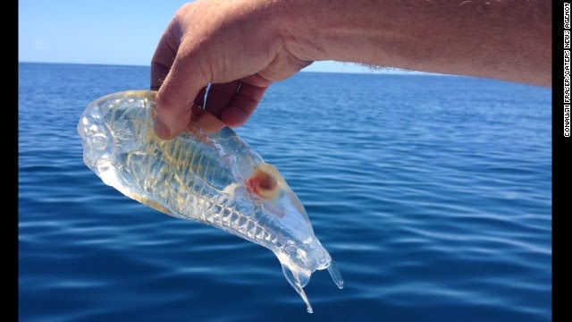 Quando Stewart Fraser avistou a criatura transparente flutuando no Pacífico, 40 milhas ao largo da península de Karikari , ele não tinha certeza se queria mesmo no seu barco , afirmou o pescador a um jornal.