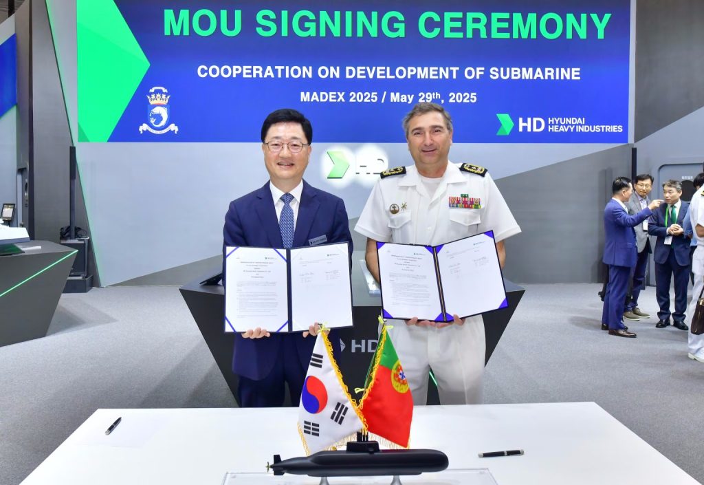 A Marinha Portuguesa e a empresa sul-coreana HD Hyundai Heavy Industries formalizaram um memorando de entendimento (MoU) com vista à criação de uma parceria estratégica para o desenvolvimento de novos submarinos de pequeno porte. O acordo foi assinado durante a exposição internacional de Defesa Marítima MADEX 2025, realizada em Busan, na Coreia do Sul.